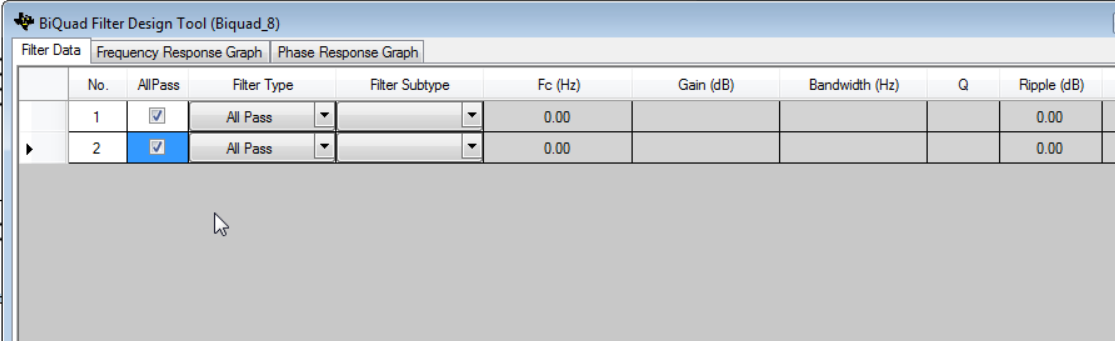 我们的客户打算使用具有0dB 的 Biquad3-4、但未使用 Biquad5-8 (或为通带设置负无穷大)。