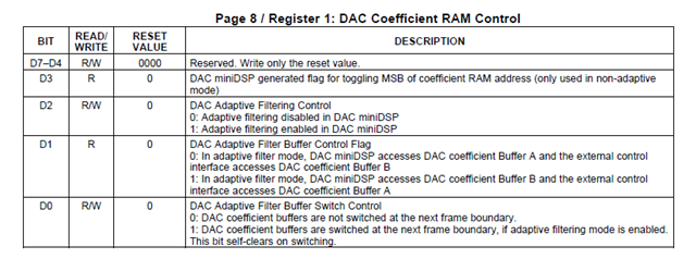 - 设置 P8R1 = 4 (在 DAC miniDSP 中启用自适应滤波)