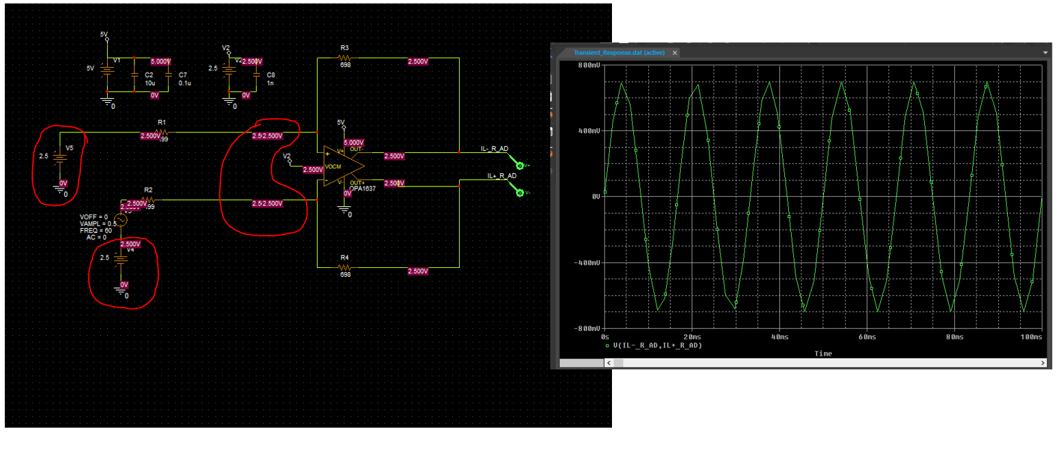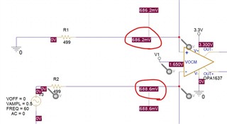 根据我的理解,我假设输出波形应该被施加到 Vocm 引脚的电压(1.65V)抵消,但是,仿真结果不是基于此假设得到的。