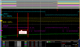 我期望 DOUT 在内部复位变为高电平后开始输出2048/fs、但它在 RST 变为高电平后开始输出3.3μs。