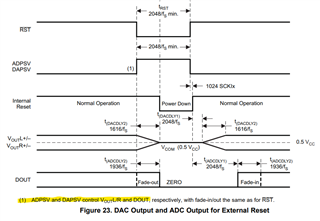 这是否意味着 RST 引脚变为低电平、在2048/fs 后、无论 RST 引脚如何、ADPSV 和 DAPSV 都变为高电平、从而返回内部复位并启动延迟?