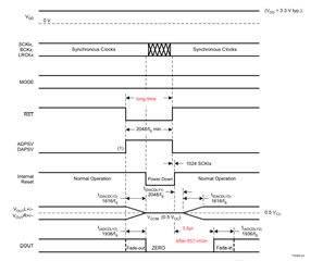 因此、一旦 RST 引脚上升、BCLK 和 LRCLK 开始工作且 DOUT 立即开始输出。
