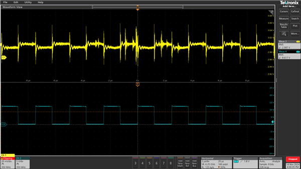 下面的图1是 EVM 上的测量值、是否正常? 为什么输入引脚上有正弦波?