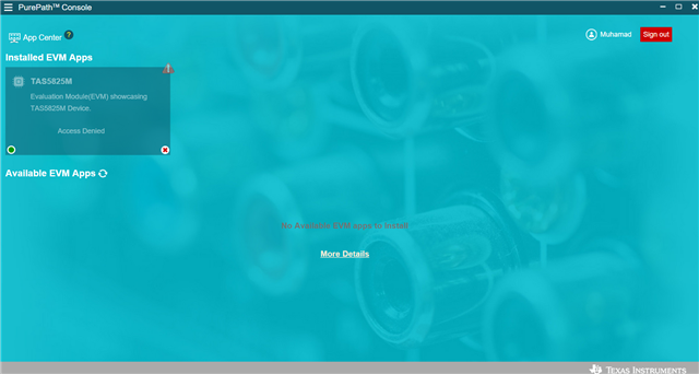 您好、我已经安装了 TAS5825 EVM 应用、但显示拒绝访问。 从 TAS5825应用的批准申请下载的应用。 请提供有关此问题的帮助。