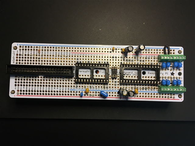 我和一位同事在过去的几天里讨论了这个问题。 我们偶然发现 、在位于音频板顶部的 Raspberry Pi 和位于其上面的 TFT 显示屏之间、我们有许多潜在的噪声源。 即 RPi 具有 HDMI 显示屏、WiFi 和蓝牙无线电。 因此我省去了 TFT、并将 RPi 放置在一根6英寸、40引脚的带状电缆的末端: