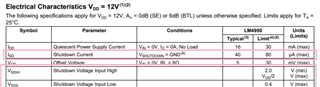 DS 的第18页介绍了由关断引脚控制的"中等电源关断"功能。 只要满足特定的要求、就可以轻松地在上电和断电之间切换。 关断引脚电压应介于2V 至 Vdd/2之间。 要关断 IC、必须进行正确的 GND 连接才能将其关断。 到这个引脚的足够低的 GND 路径应该允许大约40uA 至80uA 的电流通过关断引脚作为'ISD'。 我在下面附上了 DS 的图像。 如果不满足此要求、器件将不会响应关断请求并异常操作。 微功耗部分探讨了可以考虑的不同关断引脚配置。 上电既可以简单到只需切换开关、也可以在高/低状态之间切换。