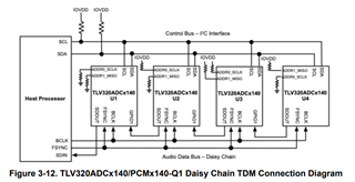我正在尝试了解如何使用 SBAA383C 中的以下配置以菊花链方式连接两个 TLV320ADC5140器件