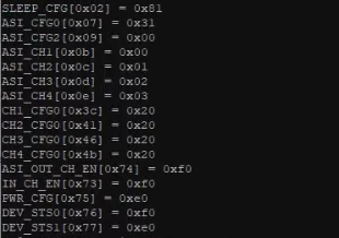我们有一个定制电路板、板上有2个 TLV320ADC5140器件、其中一个器件上连接4个单端模拟麦克风、另一个器件上连接2个单端模拟麦克风。 从上面的屏幕截图中可以看出、我已经尝试按照相关应用手册配置软件、但是软件似乎未反映配置的预期