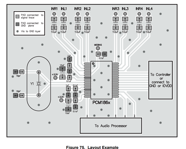 在我使用 PCM 1863作为 ADC 的设计中、我遇到了噪音/噼啪声问题、即作为时钟主器件连接至数字端的 DSP (发送 MCLK)、而数字端的串行输出连接至 D 类放大器。