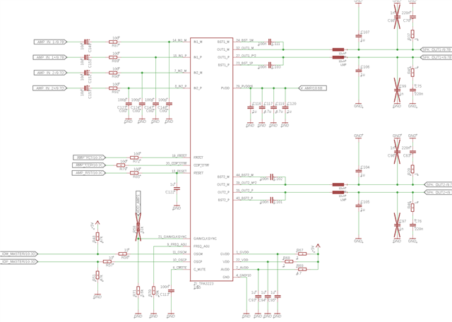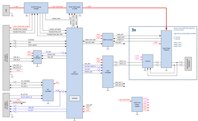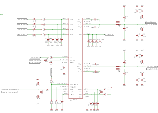 TPA3223设计出现意外振荡问题。 首先是整体系统说明、基本上放大器集成到"一体式"放大器板上、适用于电池受限的应用。