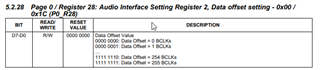 例如、如果我使用的是具有16位深度的 TDM8、那么编解码器通常侦听时隙1和2。 我可以通过添加编程到寄存器0x1C 的32位偏移(16 * 2 = 32)、将其移至时隙3和4。