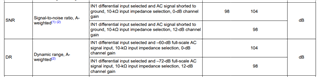 输入(dBV) | SNR A-WTD | 输入(dBV) | SNR A-WTD | ||