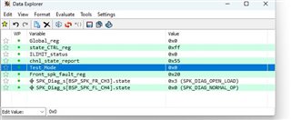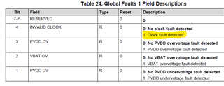 但是、当我们移除外部扬声器时、故障应该会重置、从而产生一个非零值、特别是设置了第1位和第5位。 遗憾的是、故障未按预期复位。