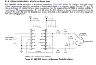 在本例中、我采用了单端音频输入、这就是为什么我遵守 INA1651数据表中报告的内容、即 IN -A 连接到 OUT B、IN -B 连接到 OUT A