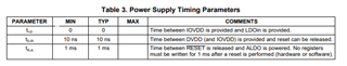 作为复位序列的一部分、该器件应保持在复位状态、直到所有电源稳定。 一旦它们被释放、复位就可以被释放、并且寄存器将为它们的默认值并且可访问。