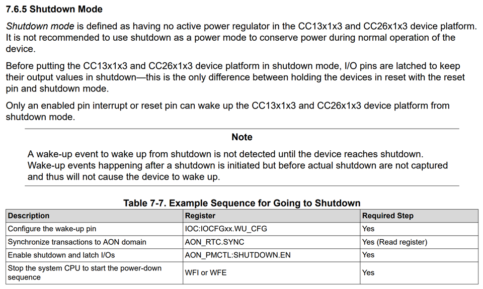 我使用的是 CC2651R3SIPA、对基于 GPIO 的从 SHUTDOWN 模式唤醒有疑问。