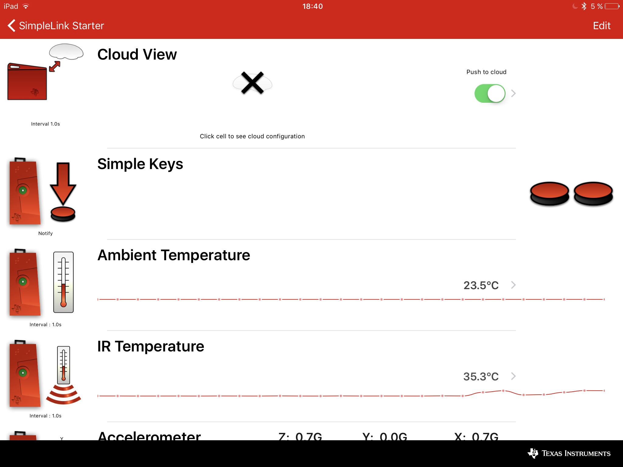 我使用TI的Sensortag,通过内置预配置的Quickstart连接从IOS设备连接到IBM的物联网平台。 以下收据不再适用于IOS上的最新TI应用。 我使用应用程序向客户和学生展示如何将传感器数据集成到云中。