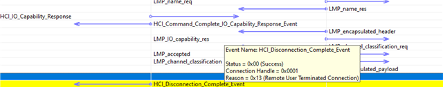我们将 CC2564C 与 CC2564CSTBTBLESW 4.2.1.0在 A2DP 灌电流配置中配合使用、每当华为智能手机尝试配对时、通信就会挂起。 只能通过关闭华为电话上的蓝牙来解除阻止。 已知受影响的设备:Huawei Nova 3、Huawei P20、可能还有许多其他 Huawei 智能手机(尽管这在 Huawei MediaPad T3 10平板电脑上不可重现)。 我随问题的发生附上了 TI Logger 对 CC2564C 的捕获(扩展名从.lgr 更改为.txt)。 从应用方面可以看到,最后一步是接收 GAP atIOabilityRequest 事件,并使用 GAP_Authentication_Response ()通过以下功能对其做出响应:
