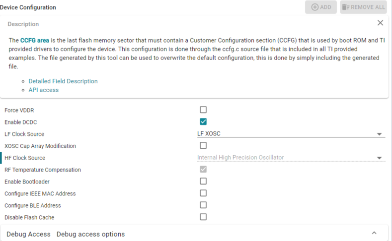 是的、他在 SysConfig 中看到与 HP 振荡器相同的配置。 但寄存器视图显示使用了内部 RC 振荡器。 那么、什么是正确的? 为什么 SysConfig 中的 HF 时钟源不能更改? 是否可以通过 DDI_0_OSC:CTL0.HPOSC_MODE_EN = 0来更改它?