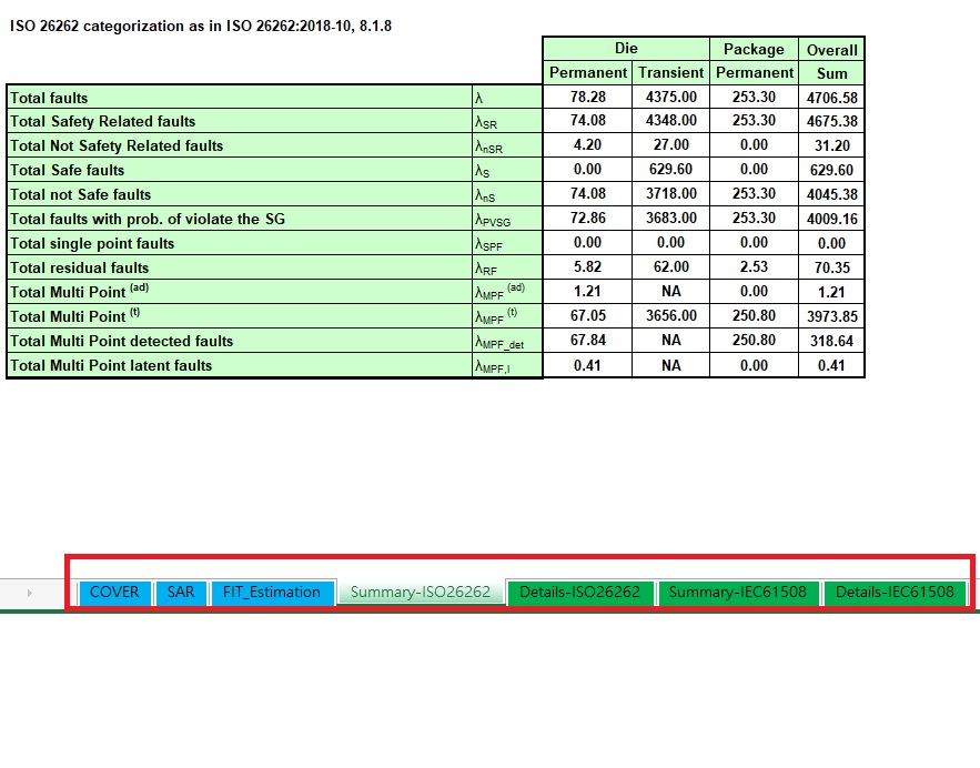 我想在 F2838x 定量 FMEDA _v1.01_GA Excel 文档中获得 IEC 61508的安全故障数据、但我发现 TMS320F28375文档和 TMS320F28388D 文档之间存在很大差异。