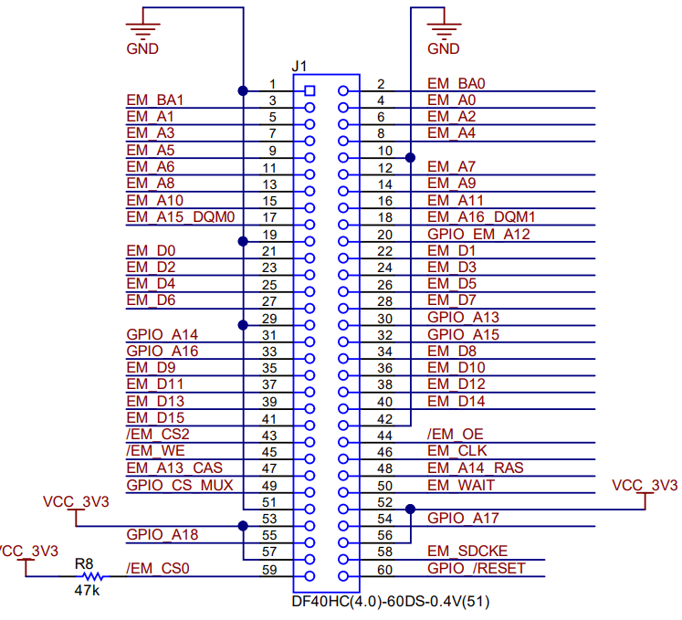 RAM 引脚布局(来自 http://www.issi.com/ww/pdf/61-64wv5128axx-bxx.pdf、 第 2 页)