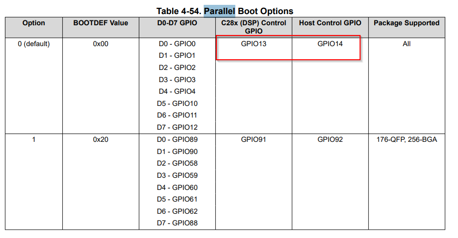 https://e2e.ti.com/support/microcontrollers/c2000-microcontrollers-group/c2000/f/c2000-microcontrollers-forum/1552686/tms320f28p650dh-parallel-boot-pins