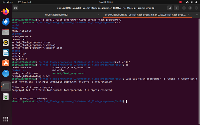 我正在尝试在上执行 SCI 引导加载 TMS320F28069M LaunchPad 使用了 flash_sci_kernel 示例。