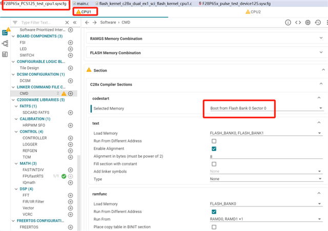 <<CPU1、CPU2 和 flash_kernel_c28x_dual_ex1_c28x1 是单独的工程。 应该如何集成和配置这些工程?