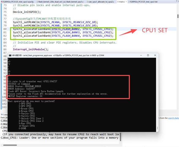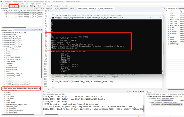 您好、专家、我想使用制造商提供的 flash_kernel_c28x_dual_ex1_c28x1 文件和官方上层计算机软件 C2000Ware_XX\utilities\flash_programmers\serial_flash_programmer。