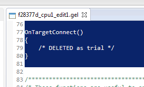 >要尝试的一件事是从CCXML文件中删除正在使用的gel文件。 如果问题仍然存在,那么我们知道凝胶文件不是问题所在。