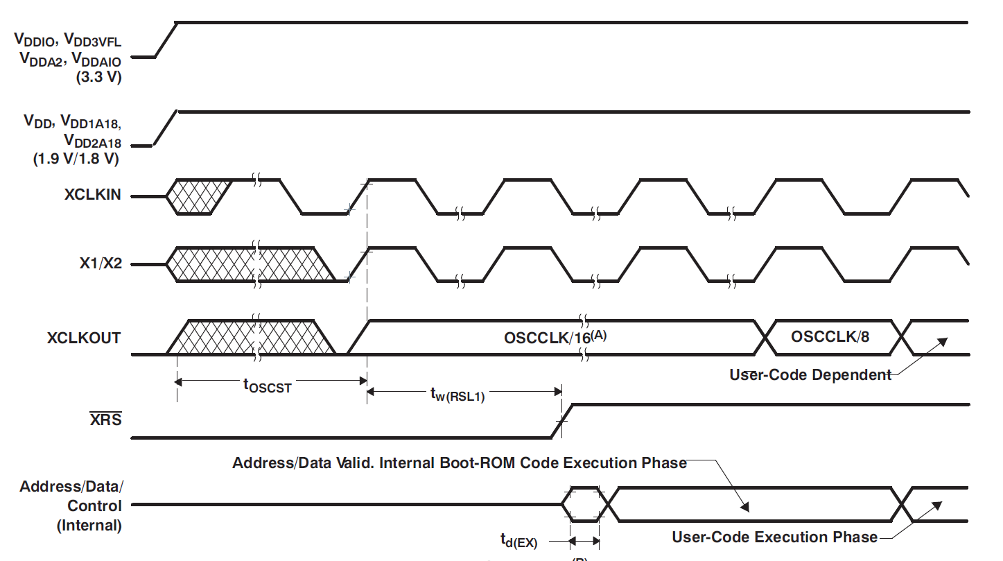 根据数据表,对于tOSCST+tw (RSL1),应将XRS引脚拉低,如下图所示。