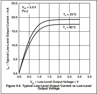 是否有数据比较SPI引脚上的输出低电平电压与输出电流,如下图所示的MSP 430的特性?