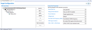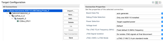 我已将控制卡插入 TMDSHSECDOCK 扩展坞、它在板载 XDS100v2 USB 接口上工作正常。 但是、我想验证我们是否能够将 XDS110调试探针与我们的产品配合使用、并且无法将其连接。 S1:A 设置 为位置1:OFF、位置2:ON、S4设置为位置1:OFF、位置2:ON、如文档所示。 控制卡通过外部5V 电源供电、并且对接开关设置为 EXTERN。 当我尝试从 CodeComposer 验证项目的 JTAG 连接时、我会得到以下结果: