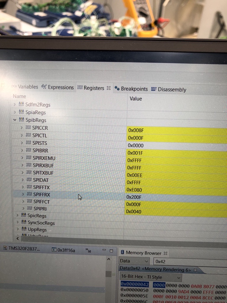我切换到了另一个应该是上一个板副本的板、并且同一代码在复位后不能正确执行(对于软复位和上电复位)。 应用程序的一部分运行正常、我可以看到正在进行 CAN 通信以及其他一些计算。 部分代码从 CLA 运行。 它从 SPI 总线上的旋转变压器芯片中读取电机位置和速度。 这部分代码开始提供错误的速度值。 如果我在连接调试器的情况下运行(不进行下电上电)、它运行正常。 但是、一旦我执行软复位或下电上电、它会给出错误的速度值。