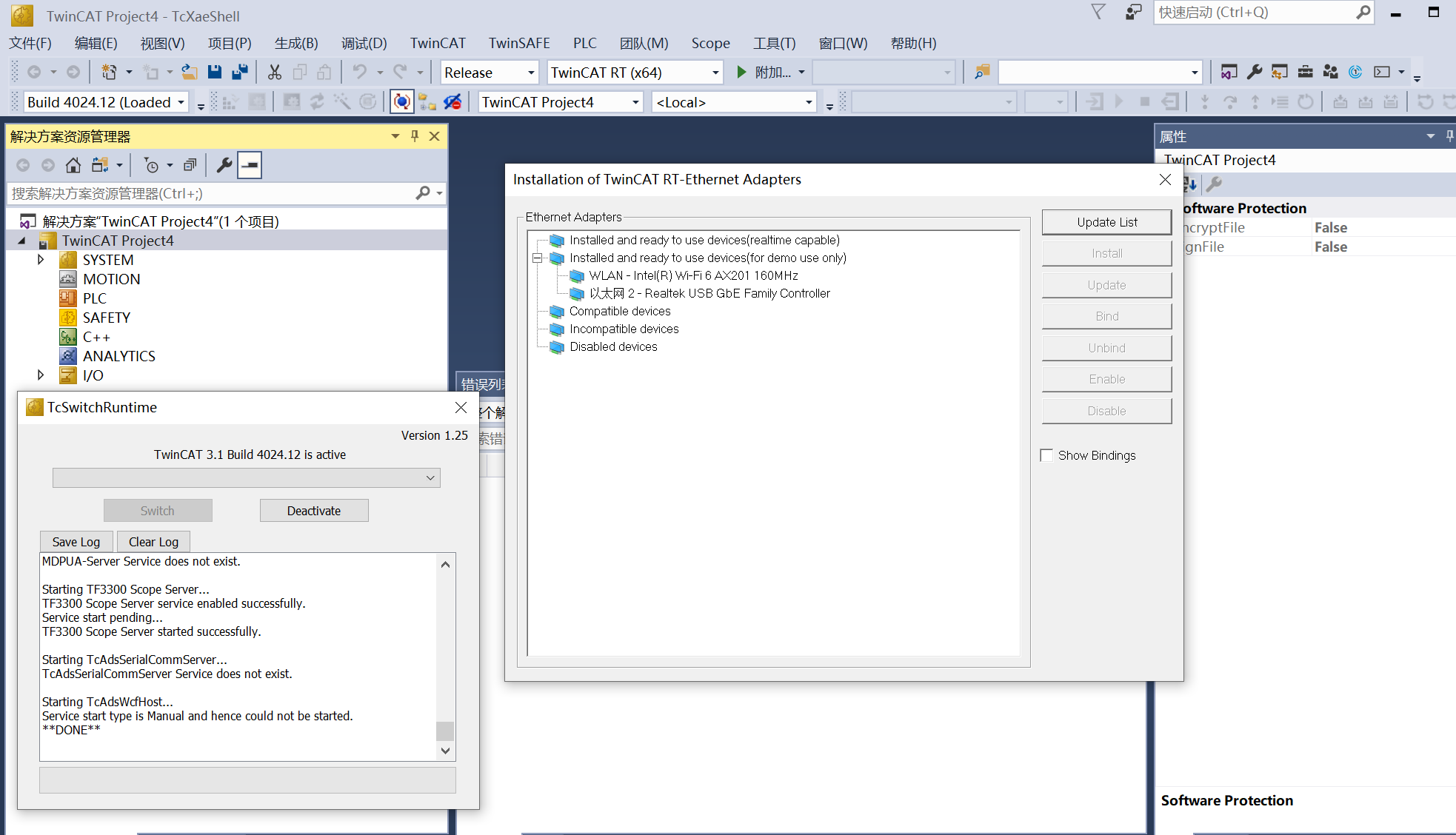 他按照"EtherCAT 从站控制器软件用户指南"的步骤操作、并转到"4.2设置 TwinCAT"的第七步: 在验证是否安装了实时以太网适配器时、他无法在"已安装并可随时使用的设备(实时功能)"中找到实时以太网适配器、并且"兼容设备"中没有可供选择的设备。