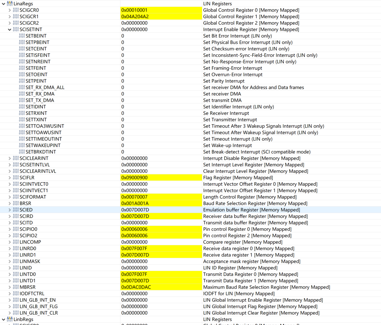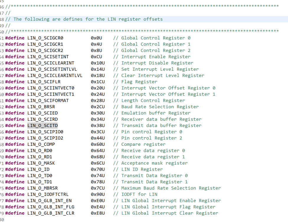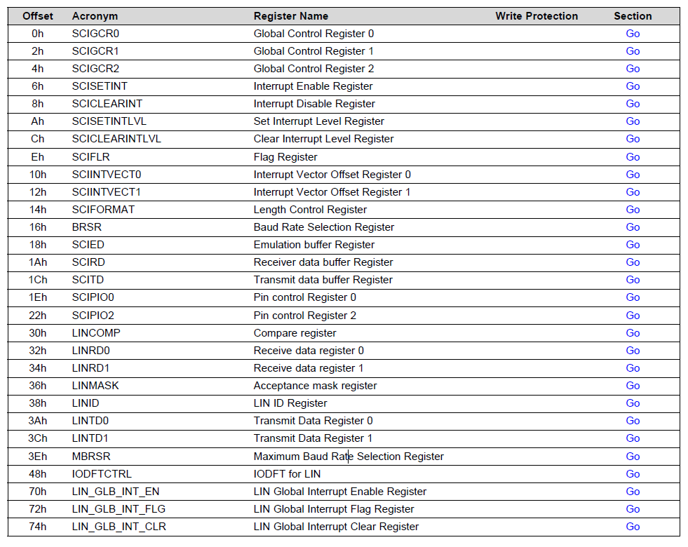 SPRUIN7中给出的 LIN 寄存器地址如下: