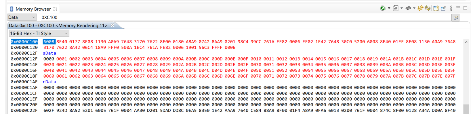 观察 LIN 的 SCITD 和 SCIRD、数据是相同的、都是7FH。 因此、LIN/SCI 正常工作。 DMACH6的目的地址和源地址 未被激活、这表明 DMACH6 没有接收到 RX_DMA 信号。 观察 LIN 的 SCISETINT 中的 SET_RX_DMA 和 SET_TX_DMA、两者都为0。 此器件尚未修改、且原始样片程序相同。 随附了原始采样程序的运行结果: