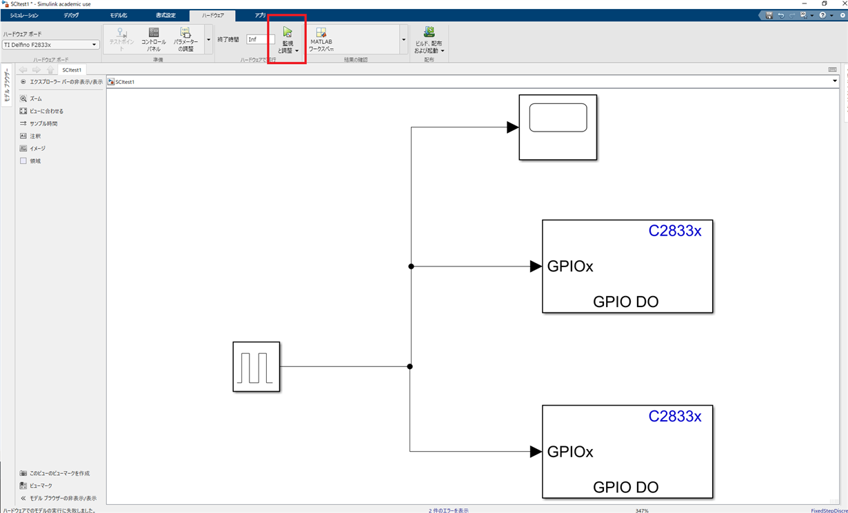 我检查了这个器件的 DS、只有1组 GPIO (GPIO35/36)可供 SCIA 用于其 TX/RX。  您能否确保在尝试与 Simulink/Matlab 通信之前已关闭了 HyperTerm 应用程序?