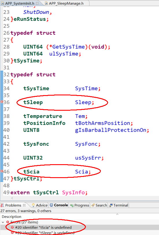您应该从     APP_SleepManage.h 中评论/删除#include "app_SystemInit.h"