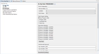 4)假设 CCS 的版本较新,请转至 Tools->On Chip Flash (工具->片上闪存)。 这将启动 CCS 的闪存设置。 我想确认假设的时钟值与您 PCB 上的时钟值相匹配。 如果这不正确、闪存编程可能不起作用。