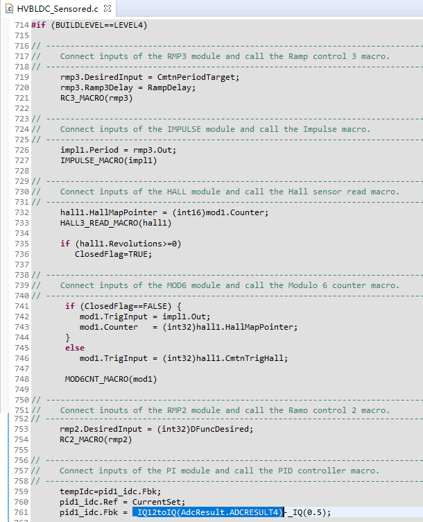 如上图所示、IFB-SUM 是反馈电流 IA、IB、IC 的和。 我查看了该例程中的电流环路控制代码。 电流(IFB-SUM)是总线电流。
