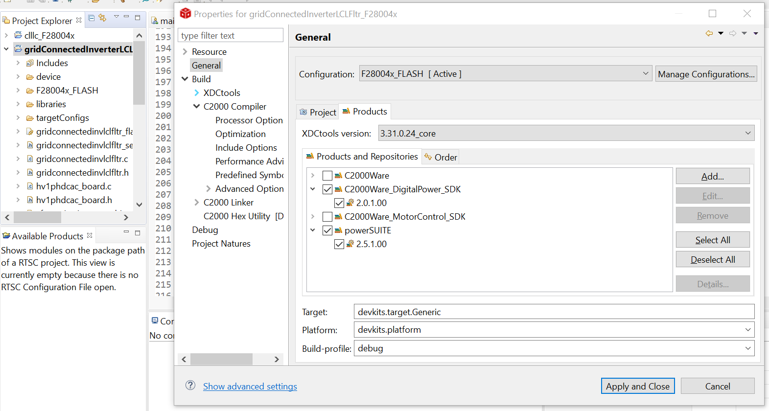 请注意、从 powerSUITE 的 v2开始、HV_1PH_DCAC 进行了重大改进、并在 C2000Ware-DigitalPower-SDK 中获得支持。 因此、如果您尝试将 controlSUITE 版本的解决方案与大于2.0.0.0的 powerSUITE 版本配合使用、则不起作用。 此外、您必须使用较旧的编译器(可能是 v6.4)来编译工程、因为不保证较新版本的编译器能够与较旧的解决方案配合使用。
