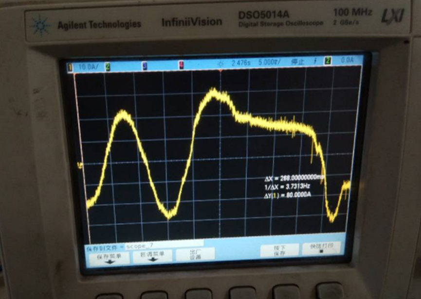 用 TMS320F28069M 控制 PMSM 电机的情况、 负载是油泵。 使用 InstaSPIN 进行测试的参数为 Rs:0.4032、Ld:12.43和磁通:1.31。  当相电流小于28A 时、它可以稳定运行、但当相电流大于28A 时、它将不稳定。 稳定的相电流波形如下所示: