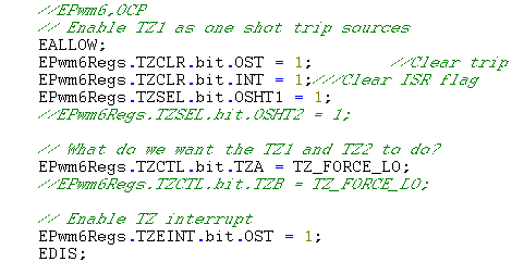 GpioCtrlRegs.GPAMUX1.bit.GPIO12=1; //将 GPIO12配置为 TZ1