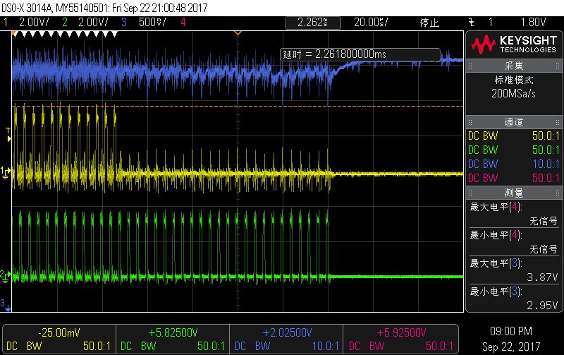 我的客户正在使用 F28035设计充电桩电源模块。 在测试过程中、他们发现 TZ1 与 ePWM1/ePWM3/ePWM4同步、延迟为800ms、无法跳闸 ePWM2。 请按如下方式找到示波器捕获。