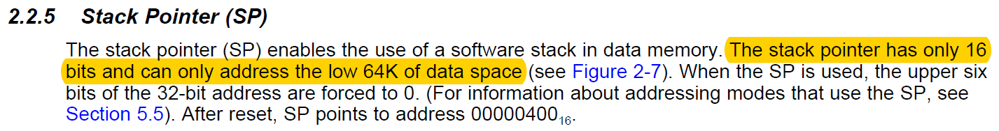 堆栈指针只能访问0xFFFF、所以我们不能将.stack 分配给地址高于0xFFFF 的 RAM 空间、对吧?