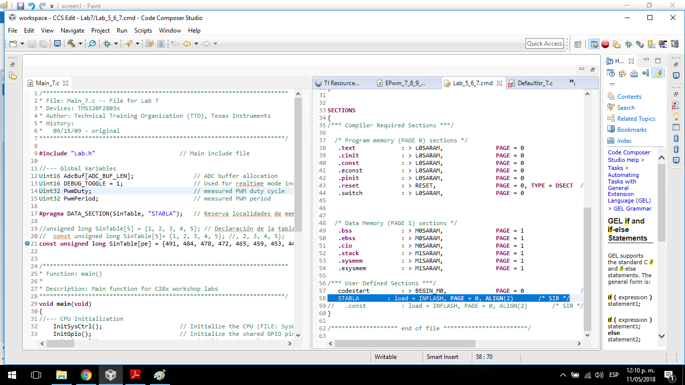 我在 main.c 文件和 file.cmd 中定义了该表、我在其中定义了闪存存储器部分、并放置了表的数据。 我使用的框架是 A 研讨会的一个示例。 您是否认为有必要尝试使用汇编语言进行编程?