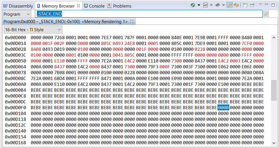 我在"Memory Browser"中查看、可以看到: