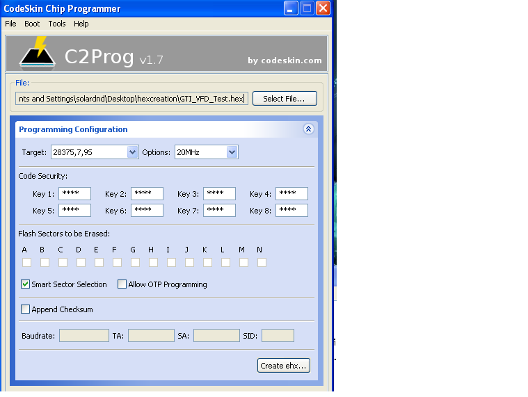 2)加载十六进制文件表单 c2prog (请参阅加载十六进制屏幕截图),加载后。