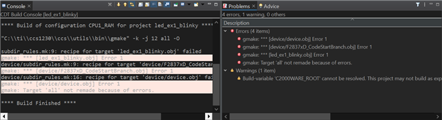 C2000Ware 中似乎是示例工程、您会遇到构建错误。 我认为有关"编译变量 C2000WARE_ROOT"的警告无法解决"是根本问题。